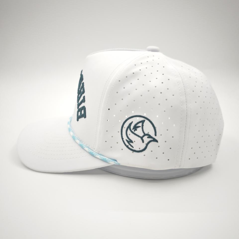 Casquette de golf imperméable 5 panneaux avec fermeture snapback, broderie et perforations découpées au laser, motif léopard sportif personnalisé, polyester/coton