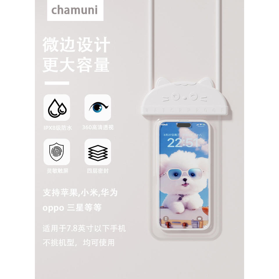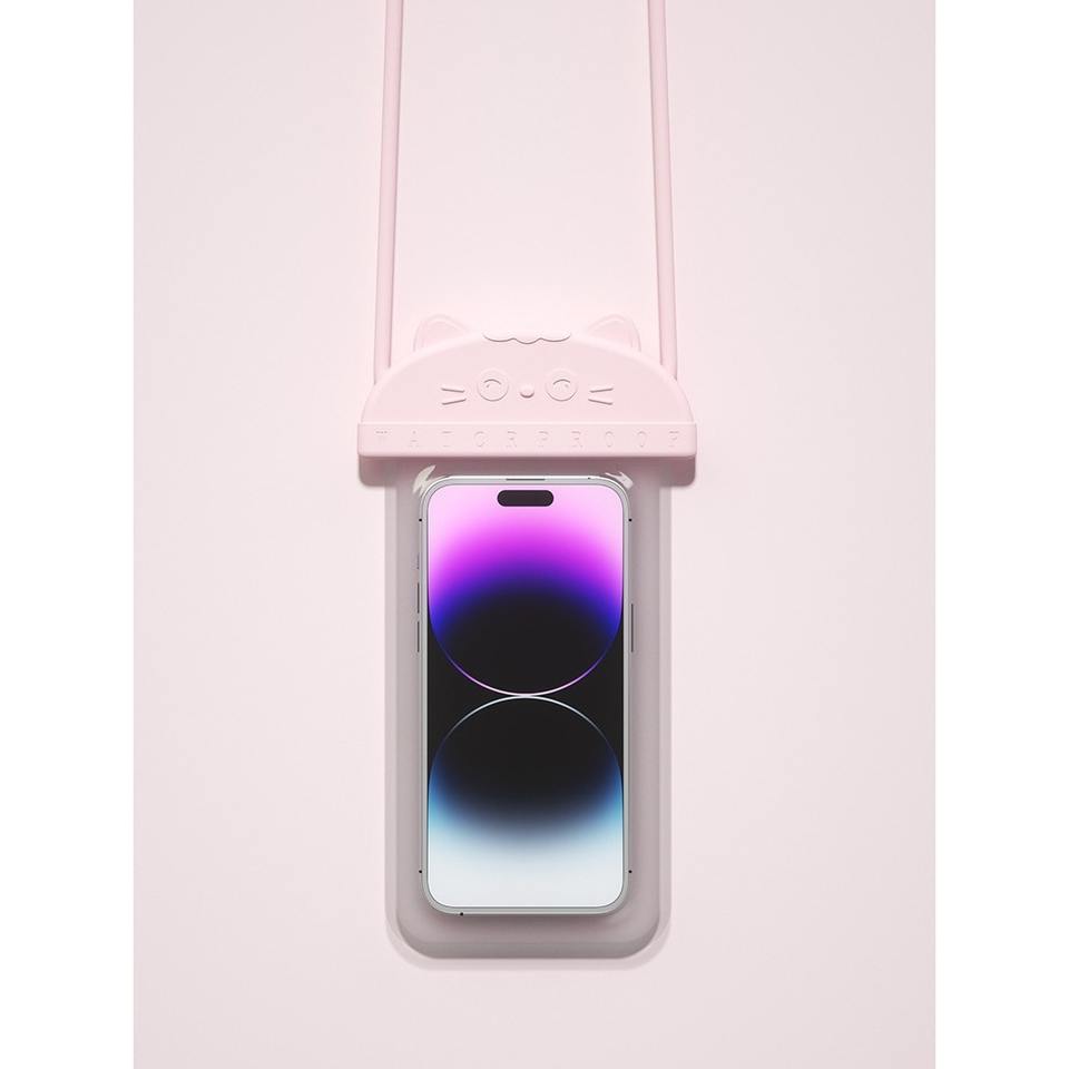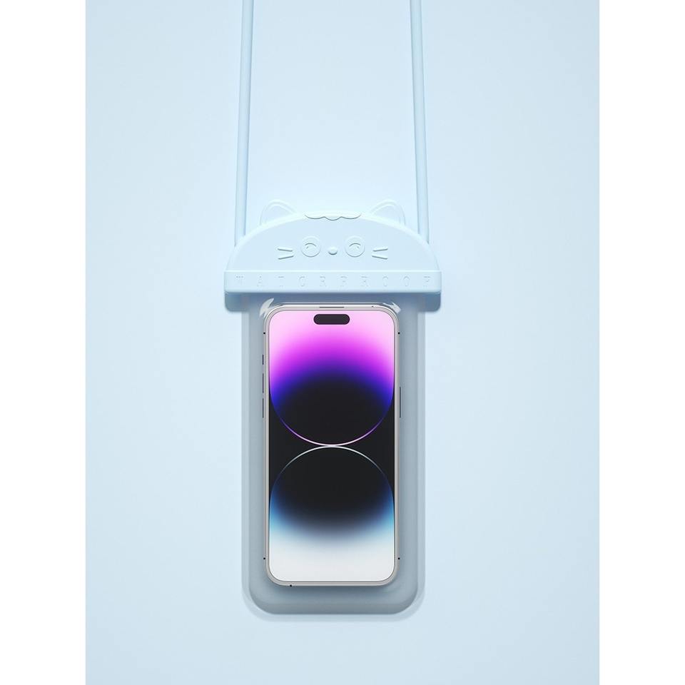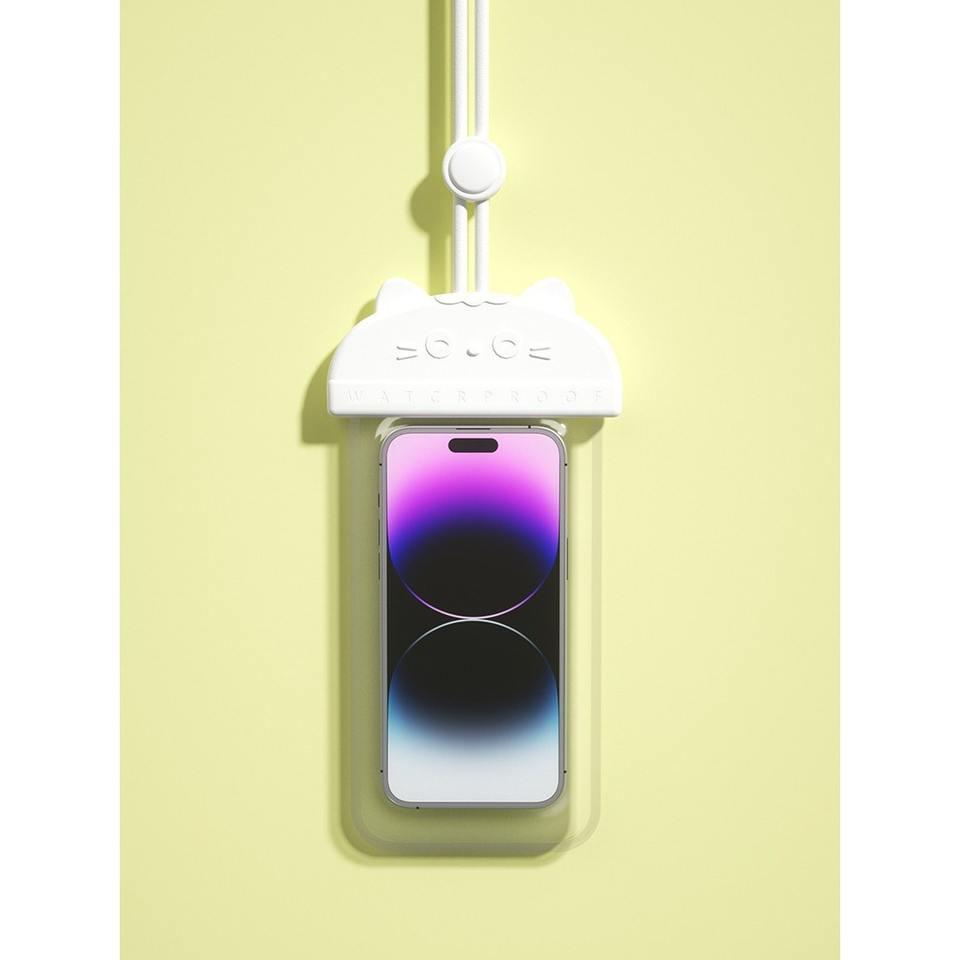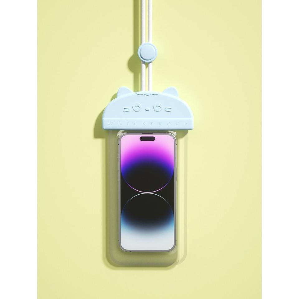 Étui de téléphone étanche avec cordon, motif chat de dessin animé, pour la natation, la pêche et les activités de plein air