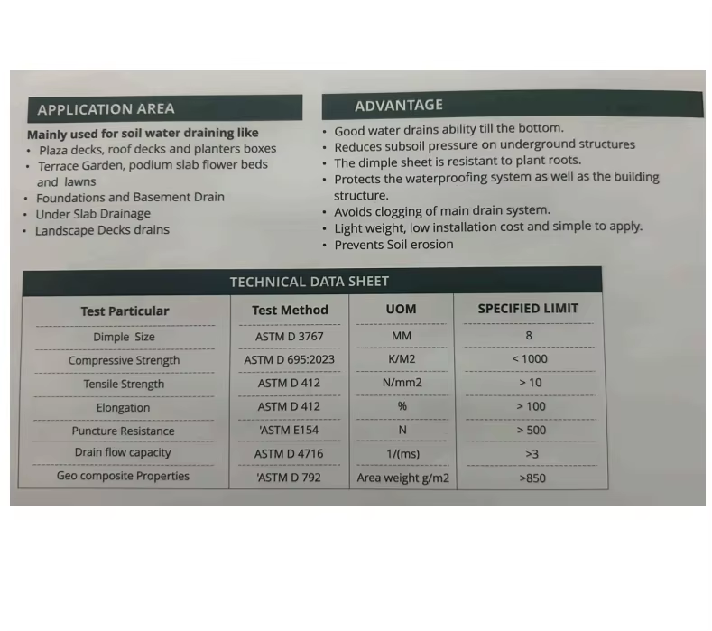 Feuille de drainage en plastique imperméable de fossette pour la dalle de podium de jardin de toit et le fournisseur indien de projets modernes durables de paysage