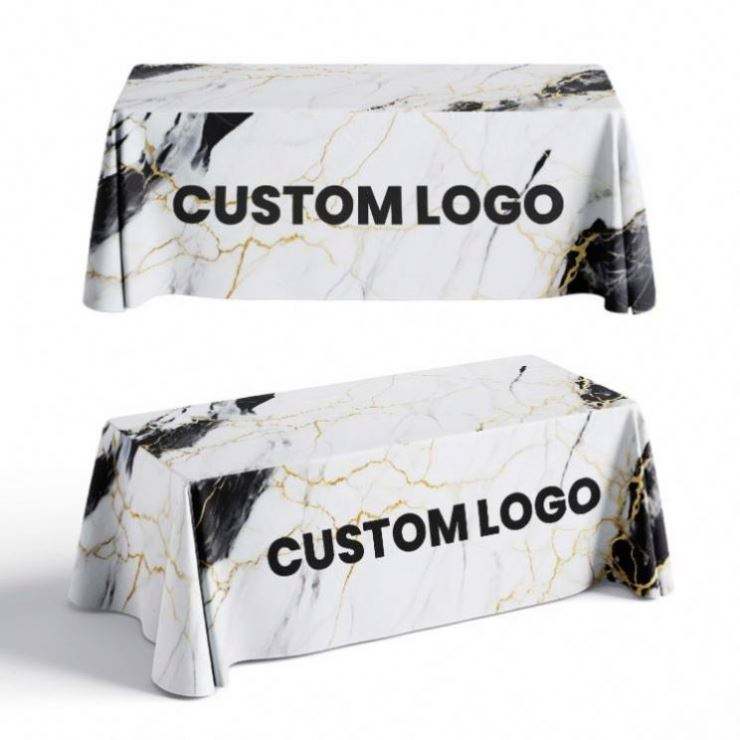 Nappe en tissu polyester imperméable avec logo personnalisé imprimé, nappe en spandex pour salons professionnels, événements publicitaires en plein air