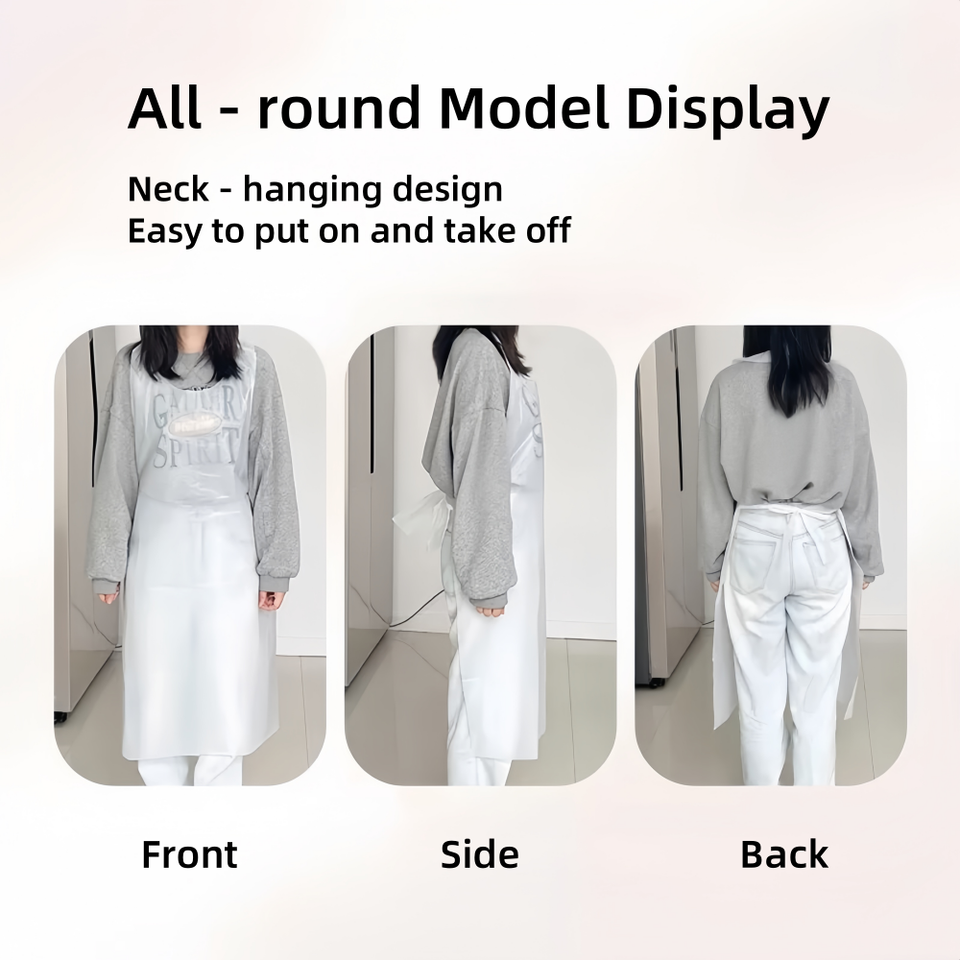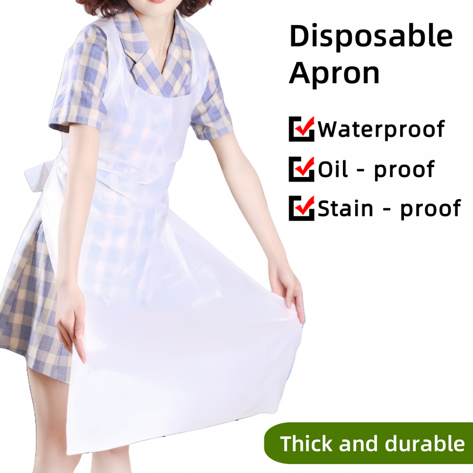 Tablier jetable sans manches en polyéthylène (LDPE) blanc, imperméable, résistant à l'huile et à la peinture, personnalisable en taille et avec logo