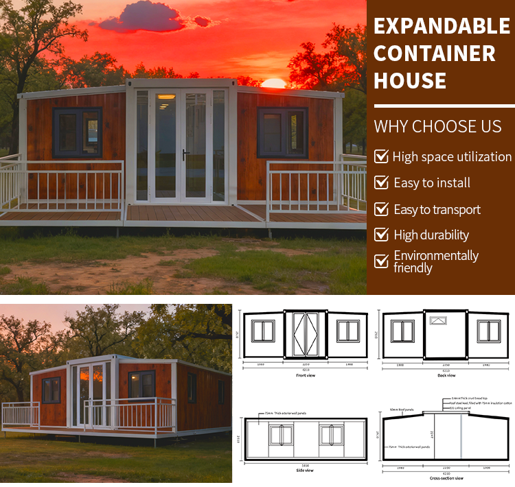 Maison conteneur préfabriquée étanche extensible 40 pieds 20 pieds avec salle de bain, villa préfabriquée, maison portable, construction immobilière