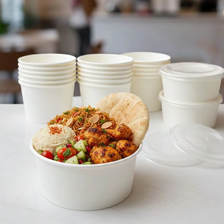 Bols en papier kraft rectangulaires jetables de qualité alimentaire, imperméables, avec finition brillante et motif gaufré, anti-fuite et résistants à la graisse, pour salades