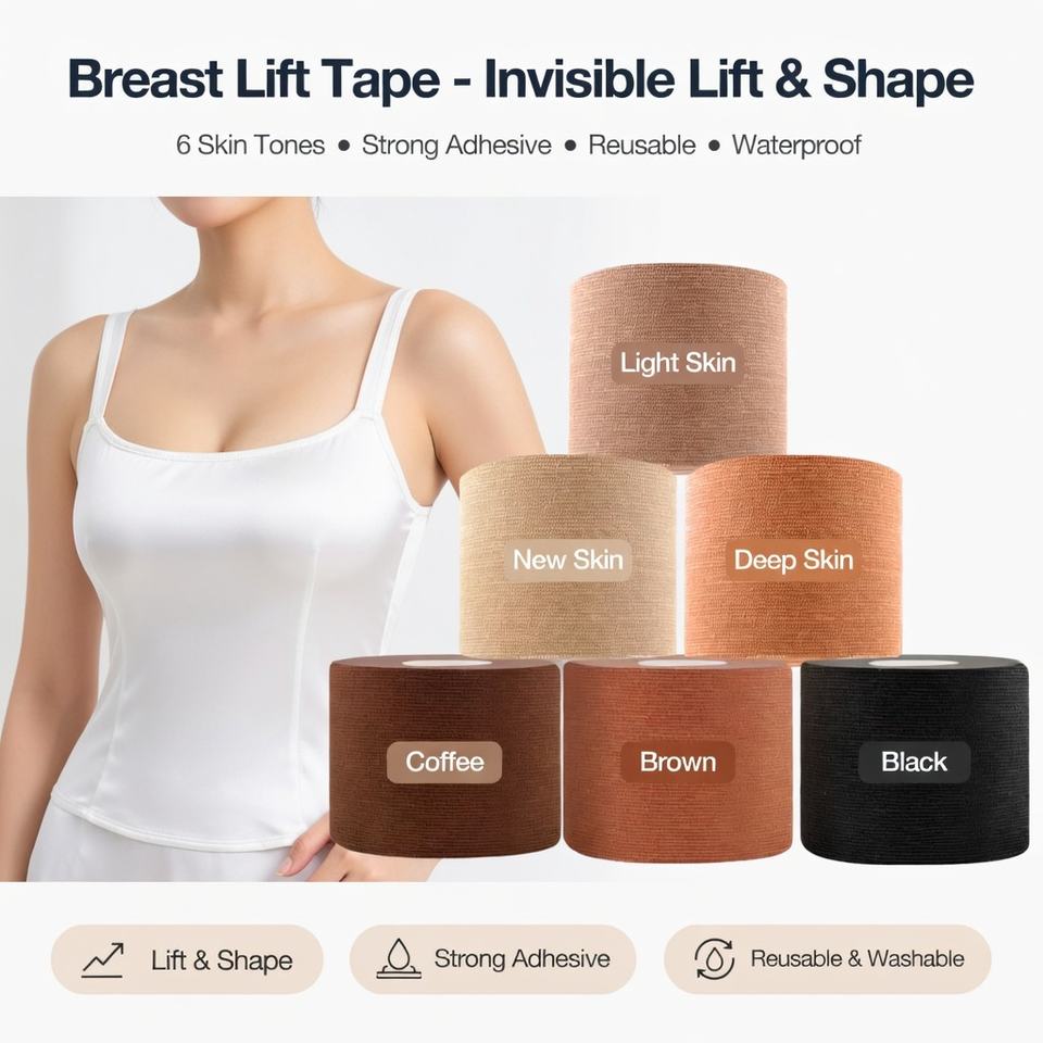 Bande adhésive pour poitrine imperméable, réutilisable, rembourrée, sans couture, confortable, lavable, effet liftant, cache-tétons