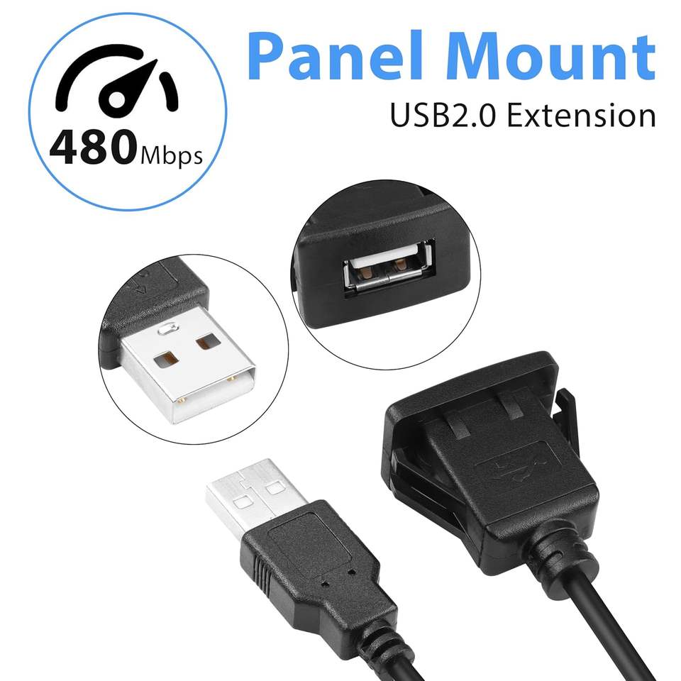 Rallonge USB étanche à montage encastré, mâle vers femelle