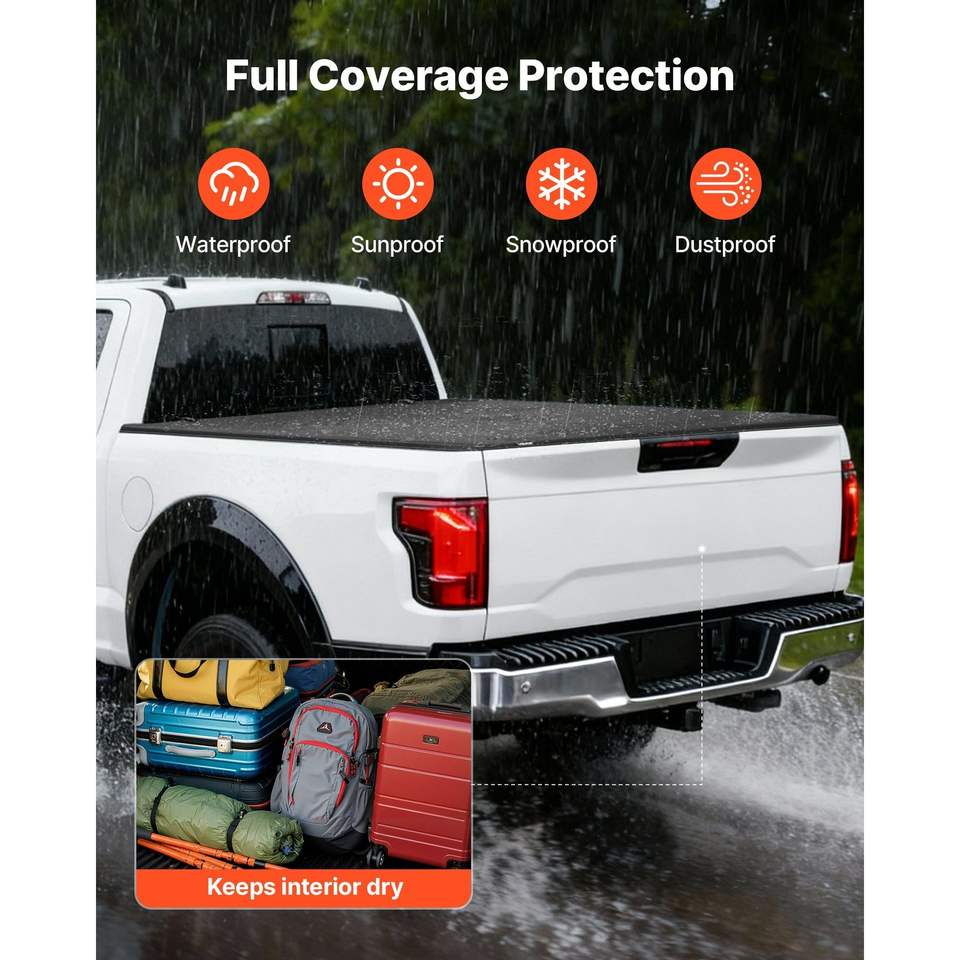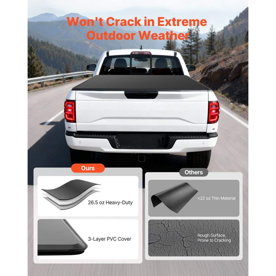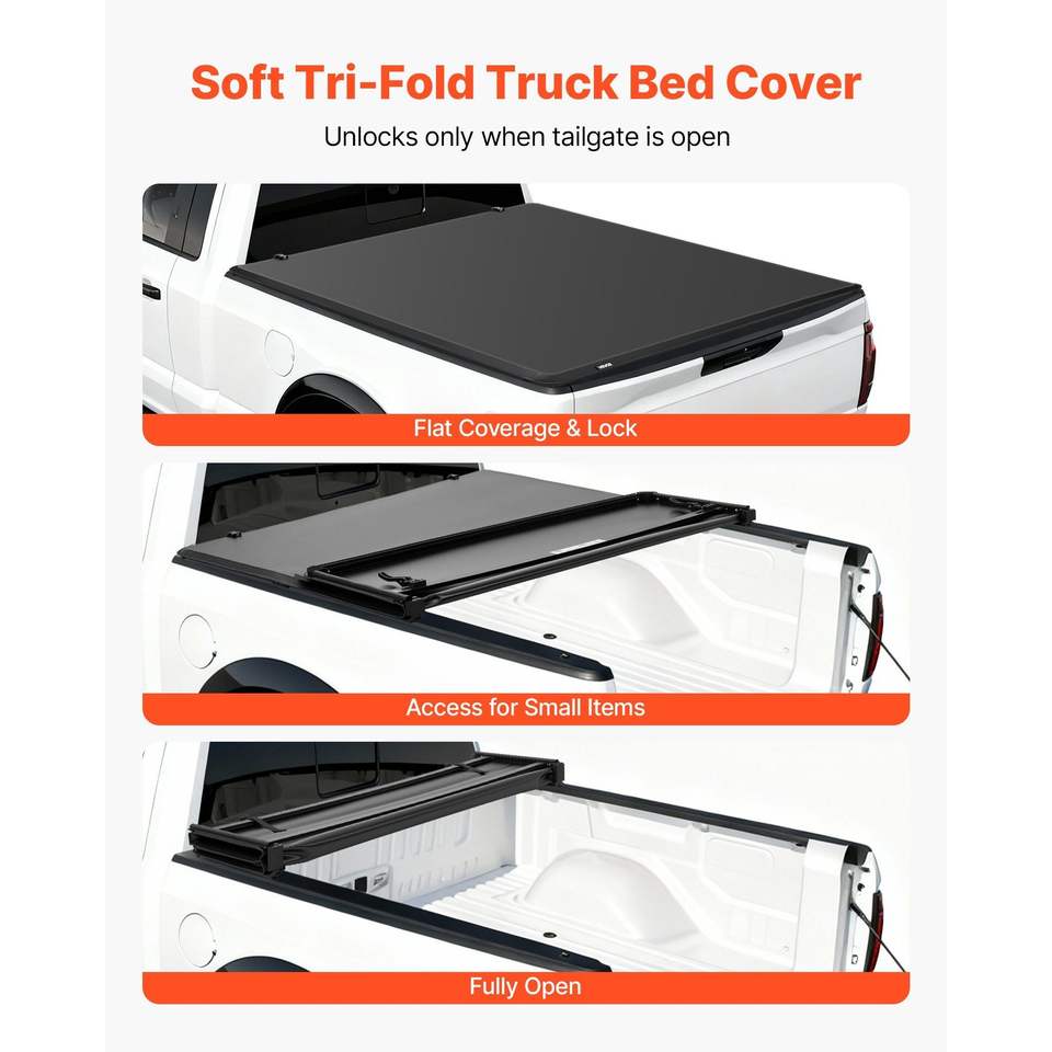 Bâche de benne souple et étanche à trois volets pour Ford F-150 2015-2025 avec benne de 5,5 pi (67,1 po) – Housse de benne compatible