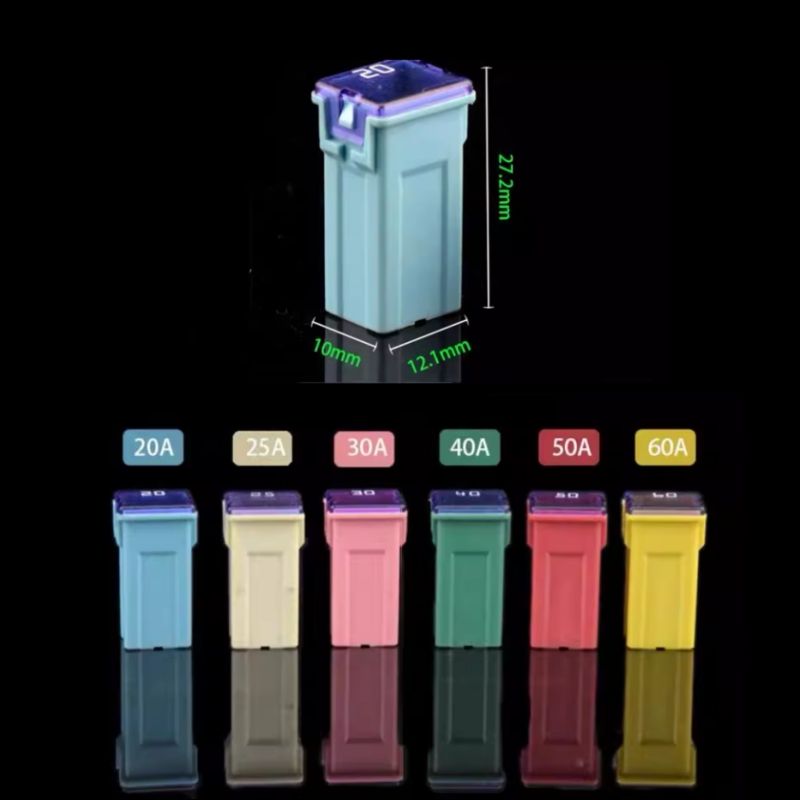 Waterproof Square Car Fuse Holder with Male Plug 20A 30A 40A 50A 60A 70A 80A 90A 100A 120A 27x12x14mm Long Pin for Auto