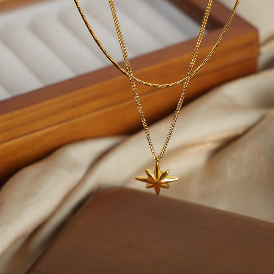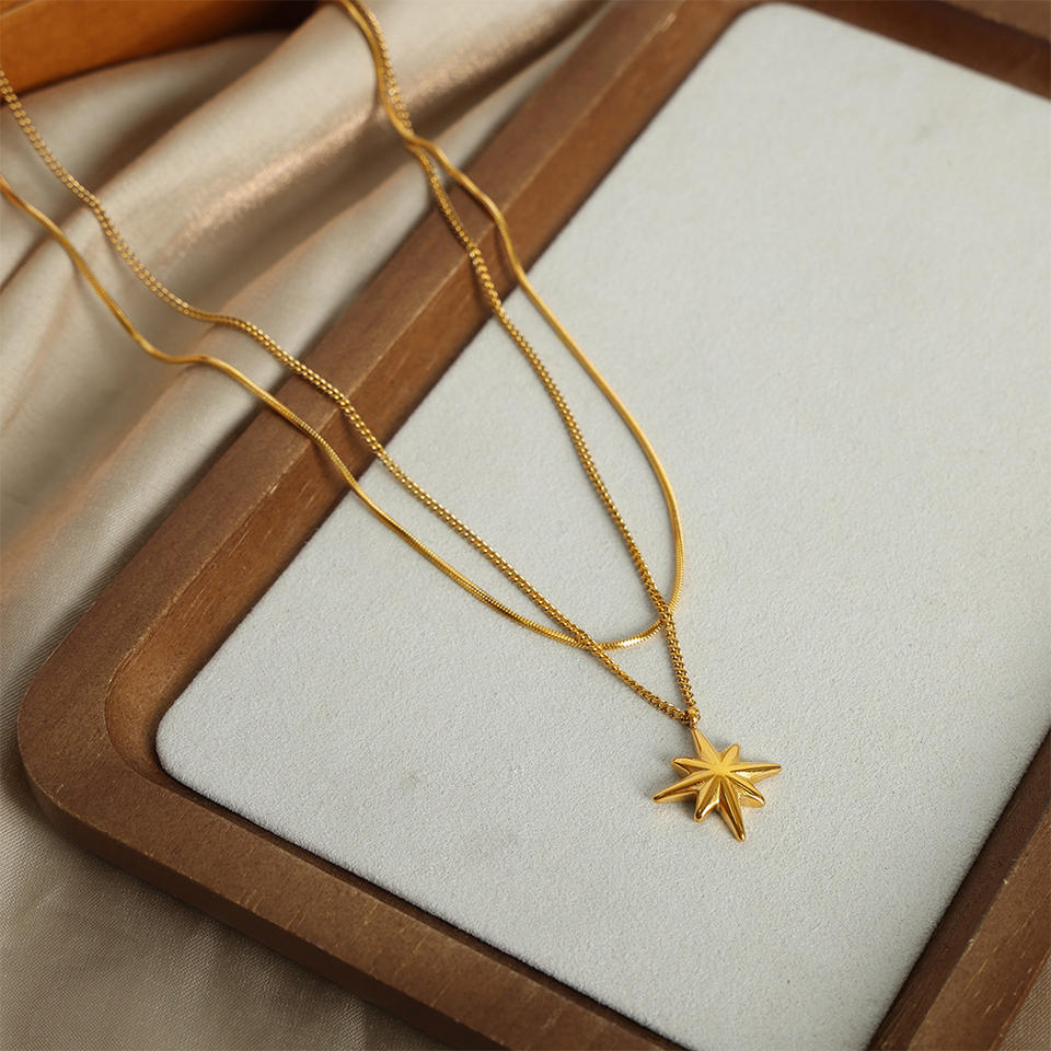 Collier pendentif étoile double couche en plaqué or en acier inoxydable étanche pour femmes bijoux de mariage collier en acier inoxydable