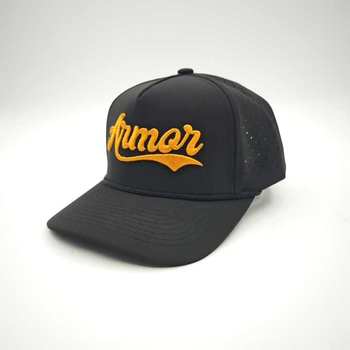 Casquette de baseball personnalisée imperméable structurée à 5 panneaux, à simple boutonnage, avec boucle, broderie, découpe laser, motif léopard, pois, dobby et losanges