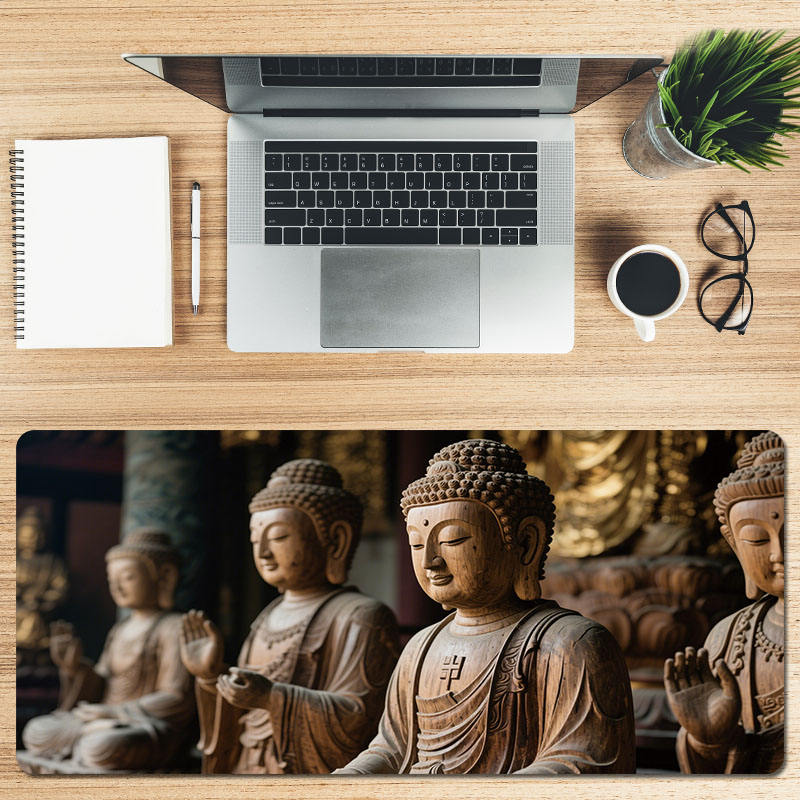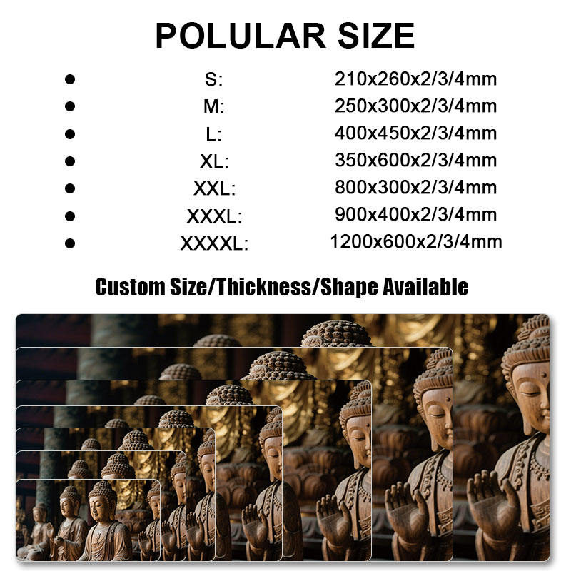 Tapis de souris de jeu imprimé bouddha en caoutchouc naturel à surface étanche, facile à nettoyer, prend en charge l'impression d'images HD