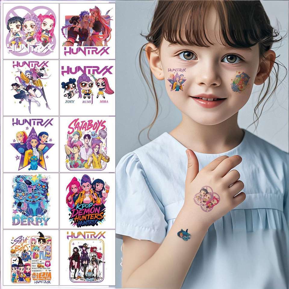 Ensemble de tatouages temporaires en papier écologique imperméable avec 50 motifs - Chasse aux sorcières Cosplay / Concert de Boy Band Autocollants pour le visage et le corps