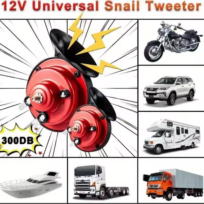 Corne de train étanche adaptée aux camions, bateaux, voitures, motos, vélos, corne de super escargot, rouge, noir, 12V