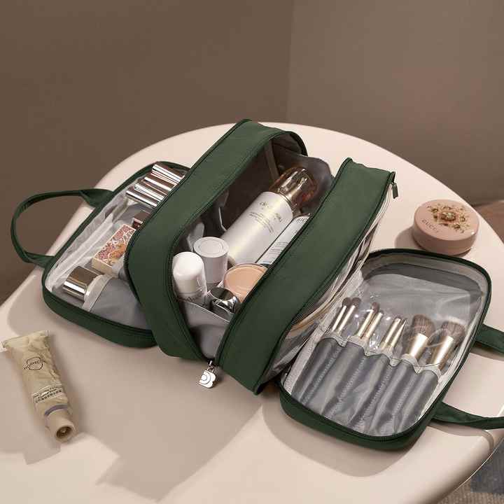 Sac de rangement pour articles de toilette imperméable pour voyage, compartiment avec fermeture éclair, grand sac de rangement multifonctionnel pour cosmétiques pour femmes