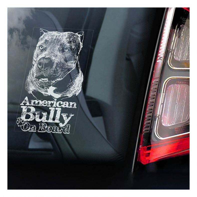 Autocollant de fenêtre pour véhicule, en vinyle découpé sur mesure, résistant à l'eau et aux UV, motif 'American Bully on Board', motif chien
