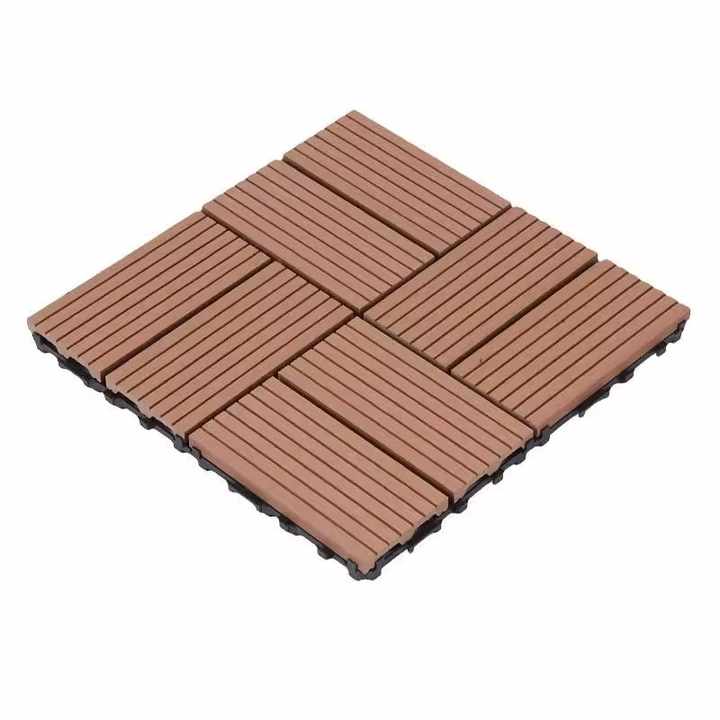 Dalles de terrasse emboîtables en WPC imperméables, composite bois-plastique pour extérieur, motif grain de bois 3D, à rayures droites