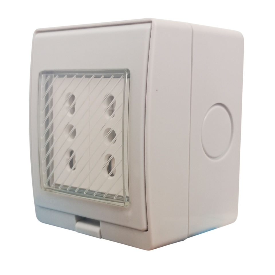 Boîte murale étanche avec 2 prises 10-16A, indice de protection IP55, pour utilisation intérieure et extérieure