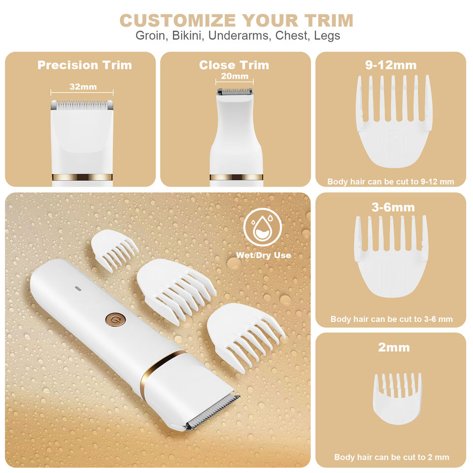 Rasoir électrique 4 en 1 étanche à l'eau et à sec pour femmes pour les poils pubiens, rasoir intime pour femmes et tondeuse à poils corporels