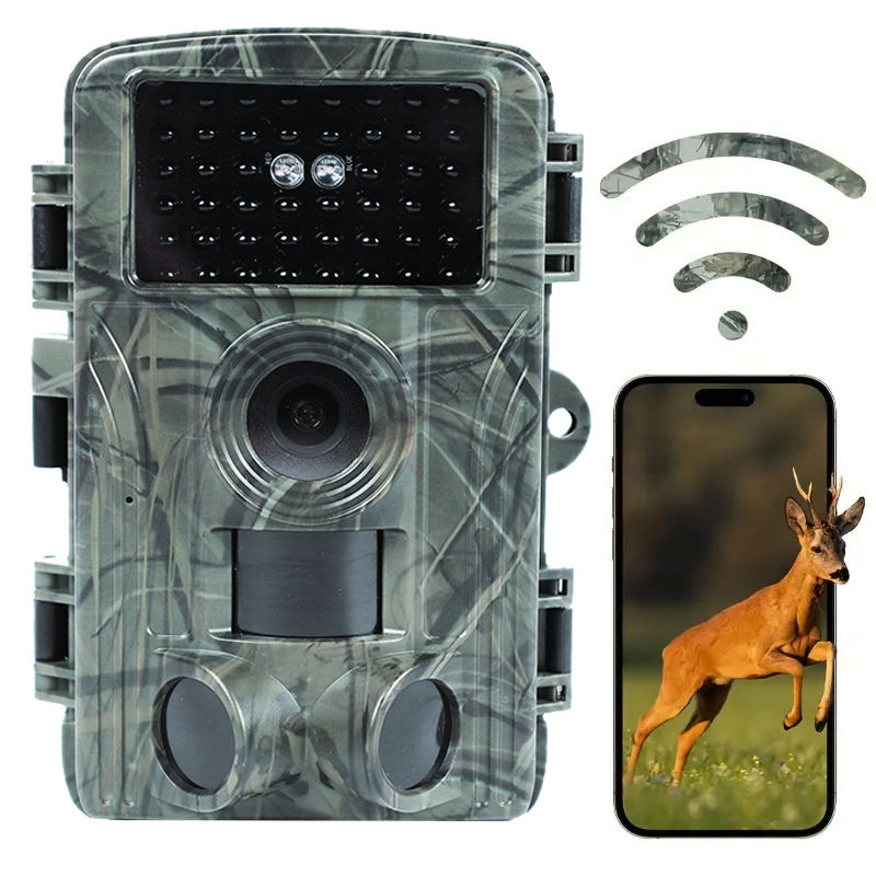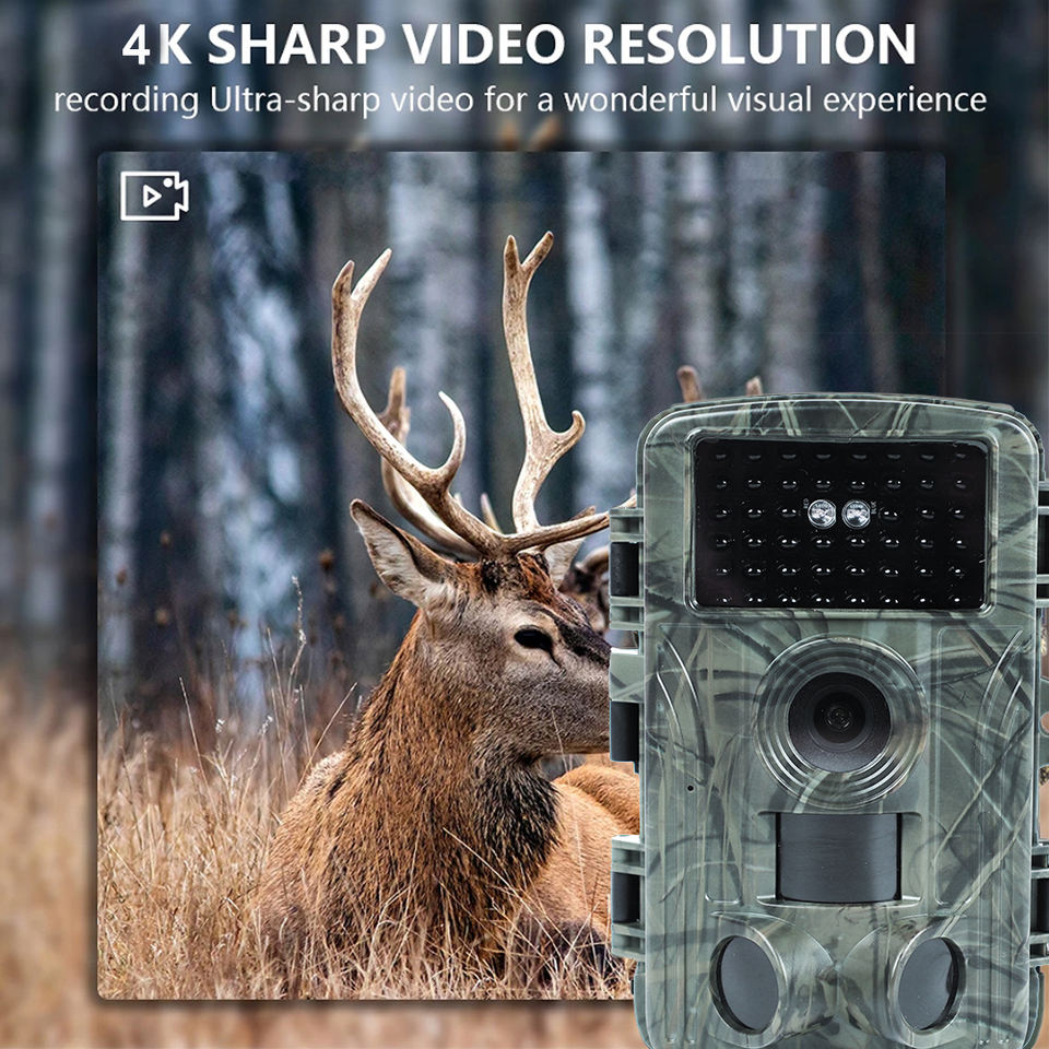 Caméra de chasse extérieure étanche 4K 60MP à vision nocturne infrarouge longue portée pour l'observation des animaux