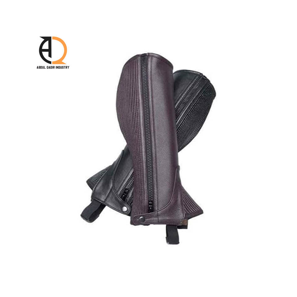 Chaps de cheval western en cuir pleine fleur véritable, imperméables et respirants, avec demi-chaps à fermeture éclair incurvée