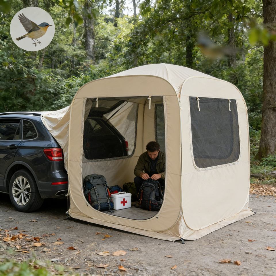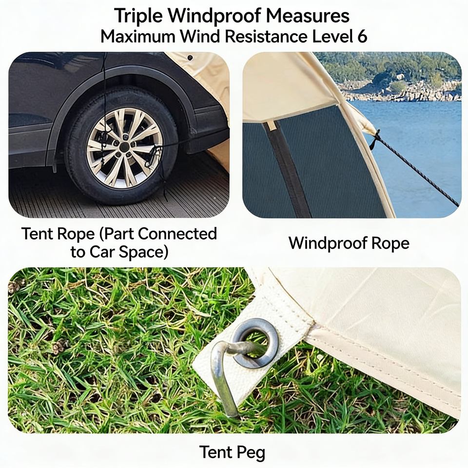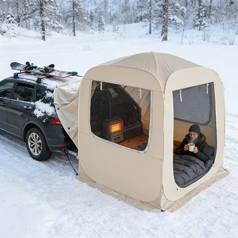 Tente de hayon de voiture imperméable et résistante au vent avec système de fixation sécurisé pour une stabilité en conditions extérieures