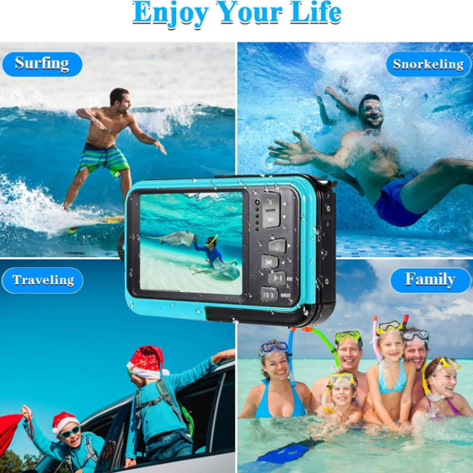 Appareil photo numérique étanche Double écran 4K HD 48 millions de pixels Plongée jusqu'à 5 mètres sous l'eau Système double caméra (avant et arrière)