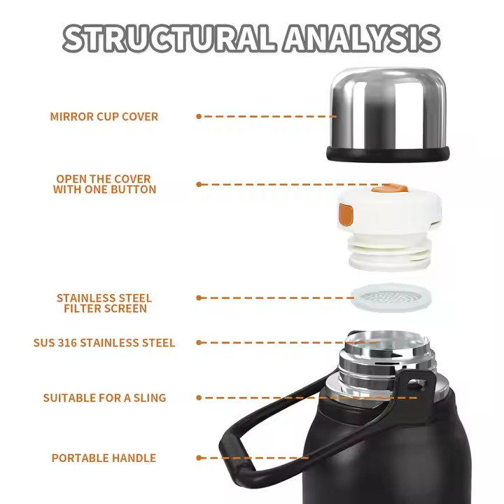 Gobelet en acier inoxydable à double paroi isolé Watersy 1200ml 18/8 Bouteille à vide de grande capacité avec logo personnalisé Design unique