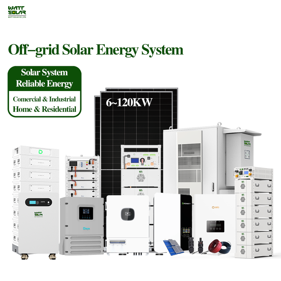 Système de stockage d'énergie domestique Wattsolar 5 kW 10 kW 60 kW, packs de batteries solaires hors réseau LiFePO4 48 V 51,2 V, contrôleur hybride MPPT