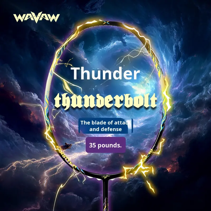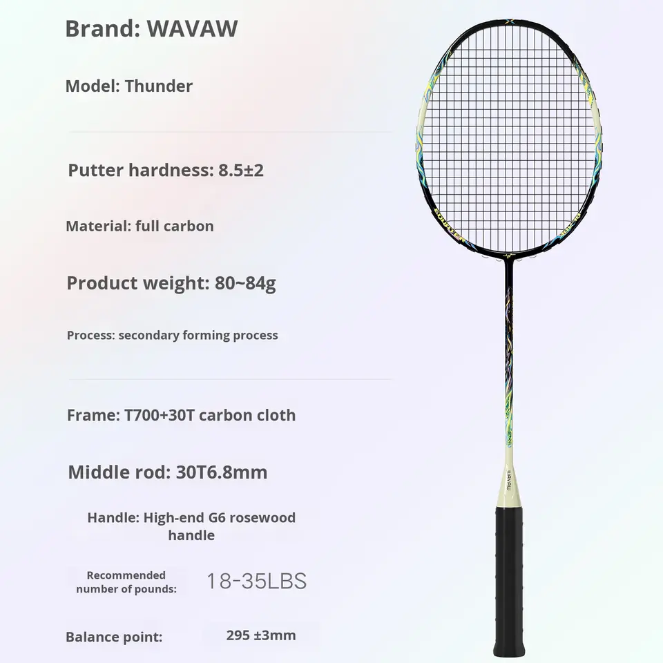 Wavaw Counterattack Thunder Raquette de badminton professionnelle ultra-légère en fibre de carbone Authentique Flagship Store 4U Single PU