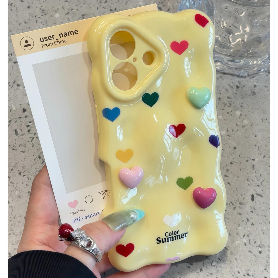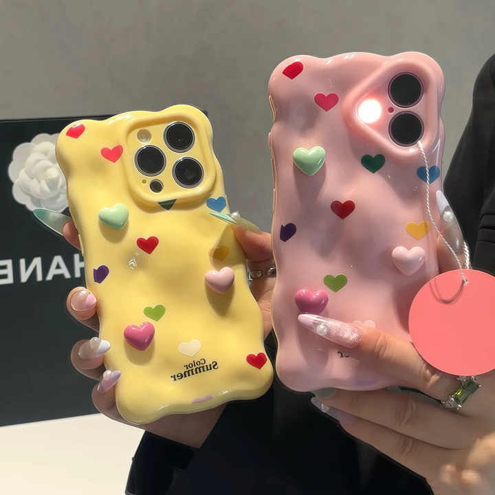 Coque de téléphone portable 3D motif Nuages Ondulés Cœur Coloré avec découpe de précision pour Apple 17 Air, iPhone 16, 15, 14 Pro Max – Vente Flash