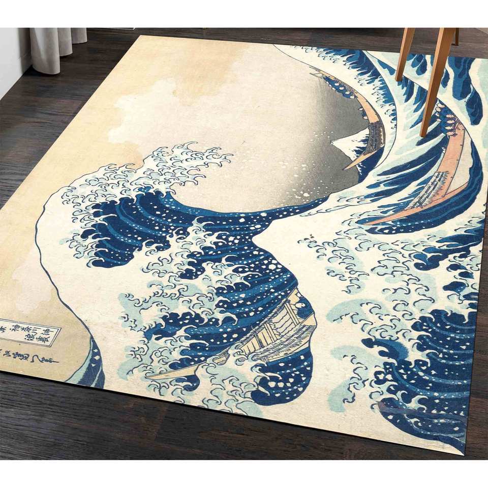 Tapis imprimé paysage ondulé, décoration murale japonaise d'extérieur, cadeau de pendaison de crémaillère, tapis en chenille