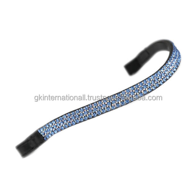Forme de vague Noir Anglais Bride En Cuir cheval front bande décorative Bleu cristaux strass méga bling front band pour chevaux