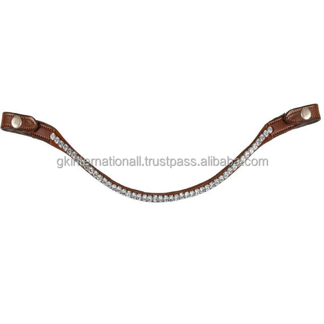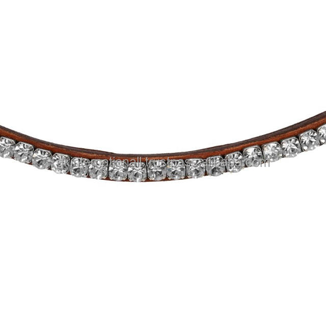 Forme de vague Tan Brown bande de front de cheval en cuir véritable avec des cristaux clairs ronds diamant bling bande de front de bride décorative