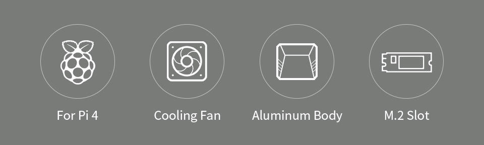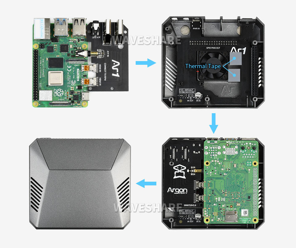 Waveshare PI4-CASE-ARGON-ONE-M.2-SKU-18531, Argon One M.2 : Boîtier en aluminium pour Raspberry Pi 4, avec extension M.2