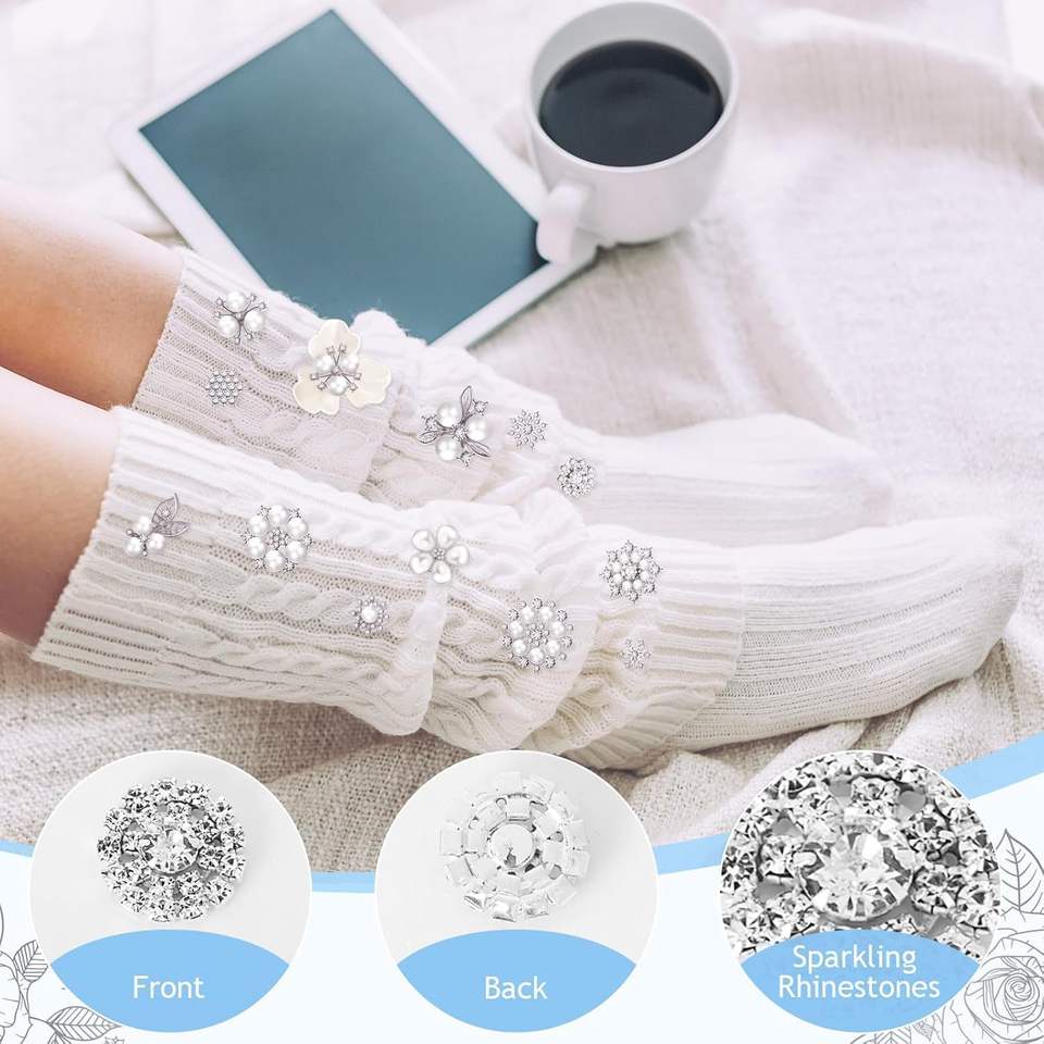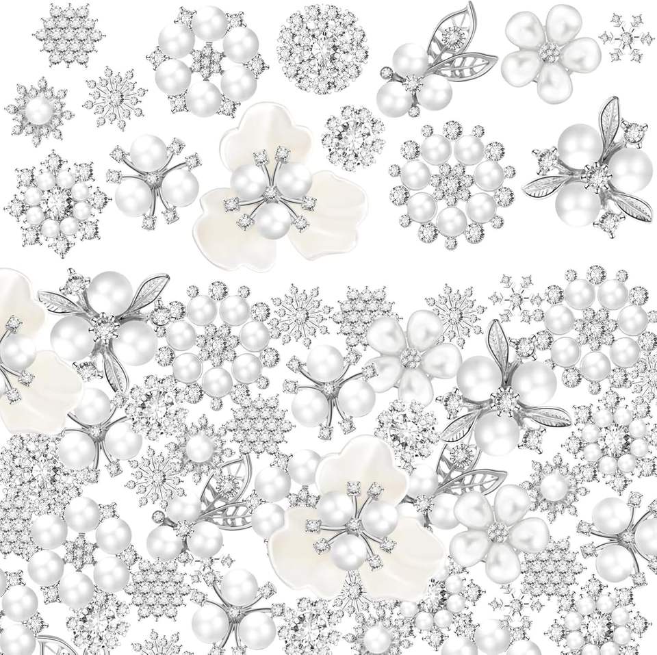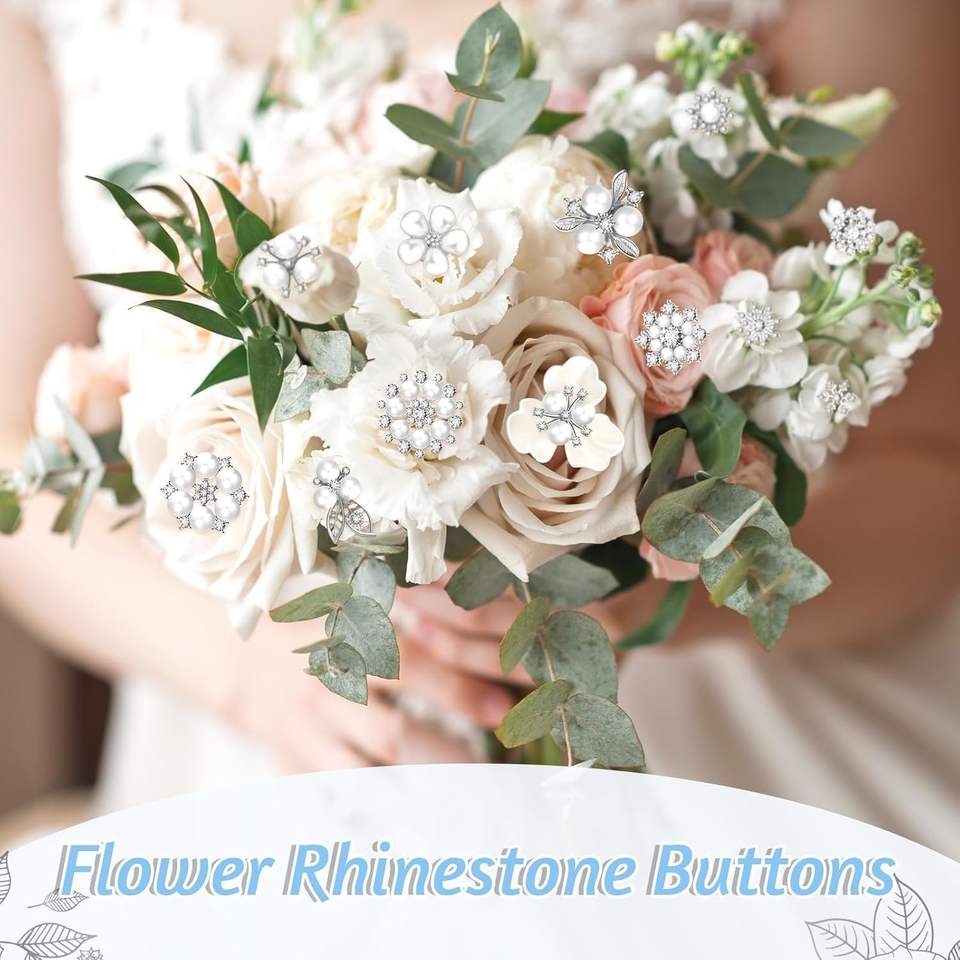 Wavwavw Lot de boutons en strass, faux perles, fleurs à dos plat, embellissements et appliques pour artisanat, fabrication de bijoux, bricolage, mariage