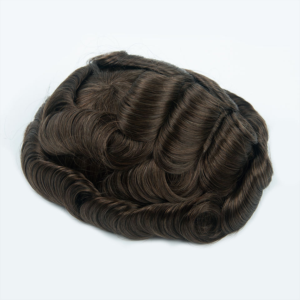 Prothèse capillaire pour homme en dentelle française, base PU, densité 100%, cheveux ondulés européens, nœuds invisibles V-Loop, système capillaire masculin en PU