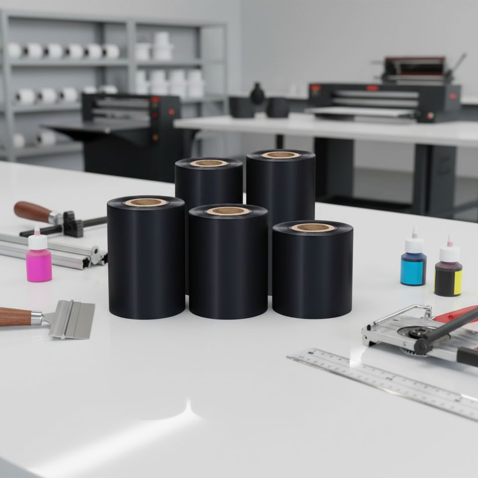 Ruban de transfert thermique en résine de cire pour imprimante à code-barres, largeur 24 mm, encre noire pour imprimante d'étiquettes