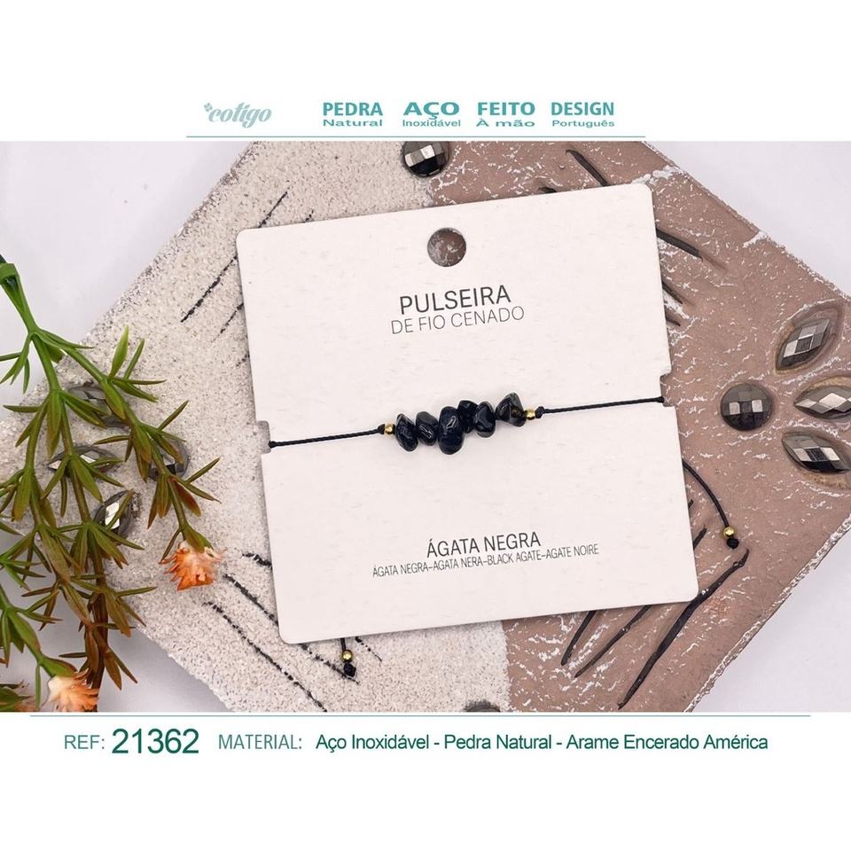 Bracelet fil ciré agate noire-Bijoux et breloques