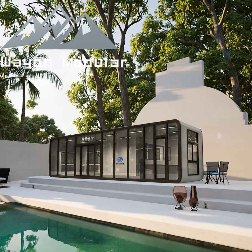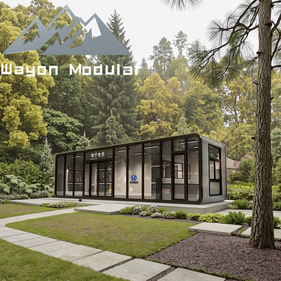 Wayon a annoncé la cosse modulaire préfabriquée de cabine de pomme de restaurant tout en verre pour le kiosque de cantine de parc