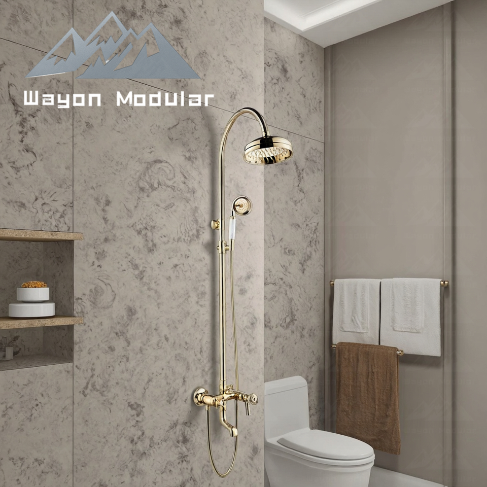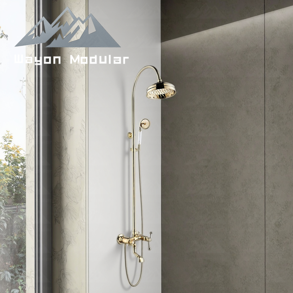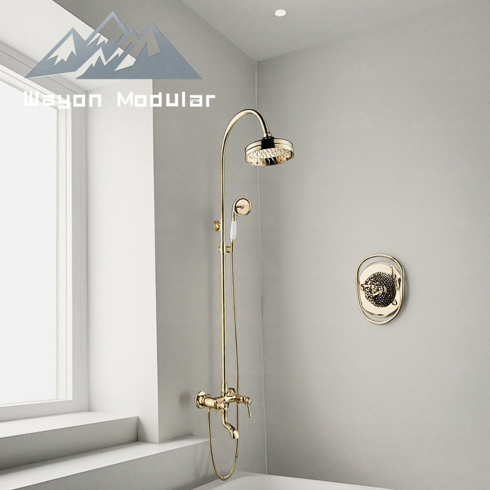 Système de douche mural de luxe Wayon en or, ensemble de douche à effet pluie avec douchette à main