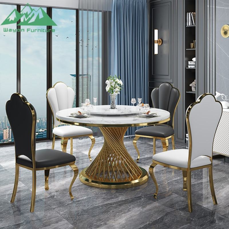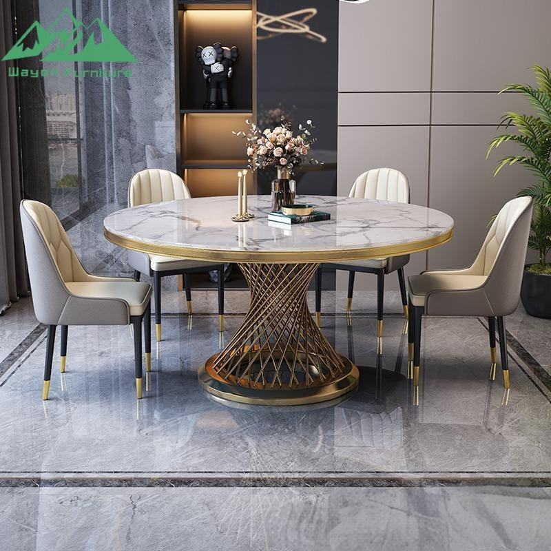 Table à manger en marbre de luxe Wayon avec plateau tournant, ensemble de table ronde moderne pour la maison, l'hôtel et les projets de restaurant