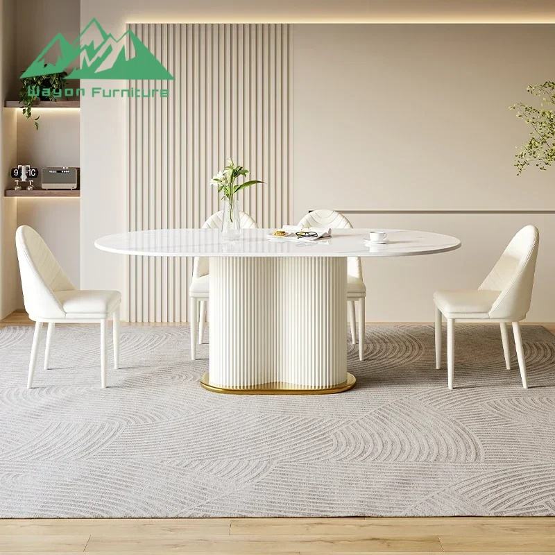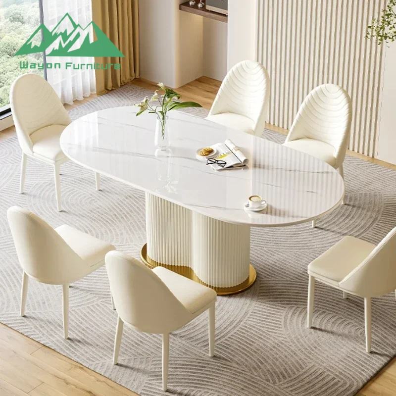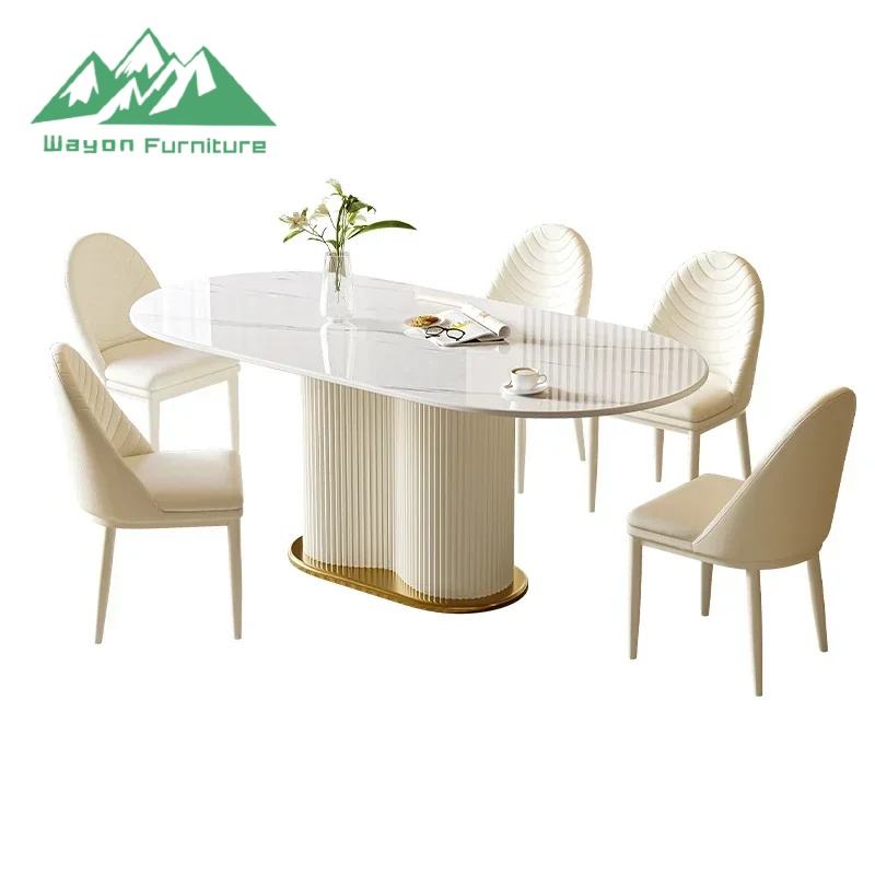 Table à manger en pierre frittée de style crème moderne Wayon, ensemble de table et de chaises ovales créatif et peu encombrant pour petit appartement