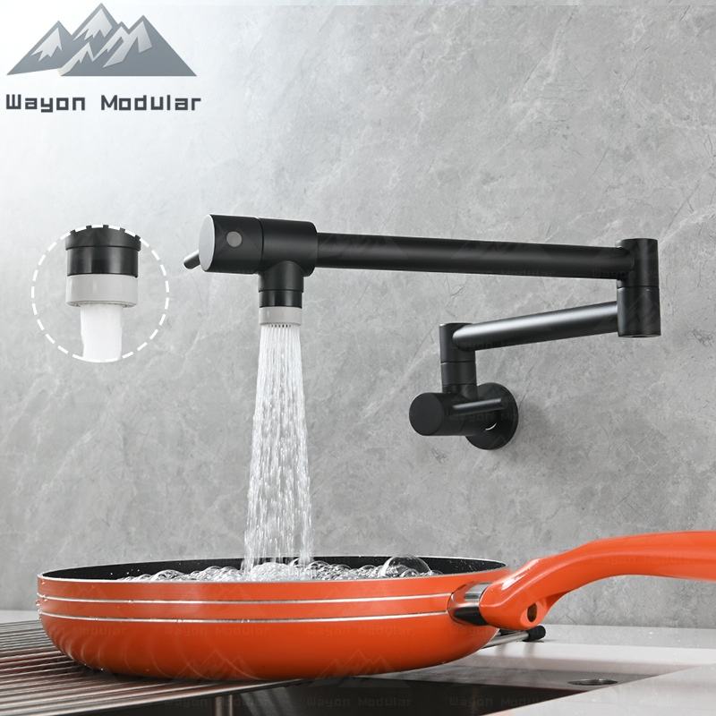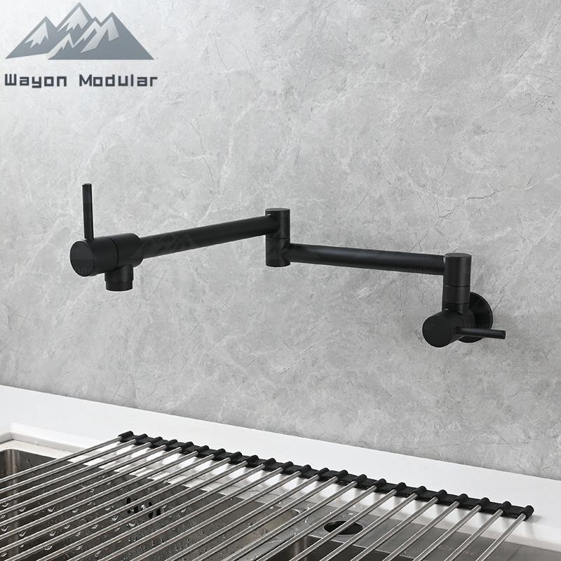 Wayon Modern Matte Black Solid Toilet Brush Set Pot Filler Faucet Wall Mount Folding Kitchen Tap