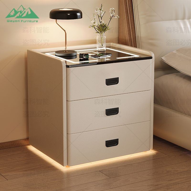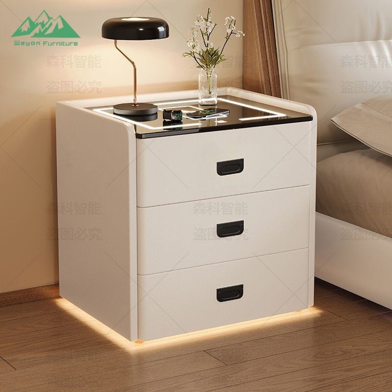 Table de chevet moderne Wayon avec serrure numérique, haut-parleur Bluetooth, charge sans fil, 3 tiroirs