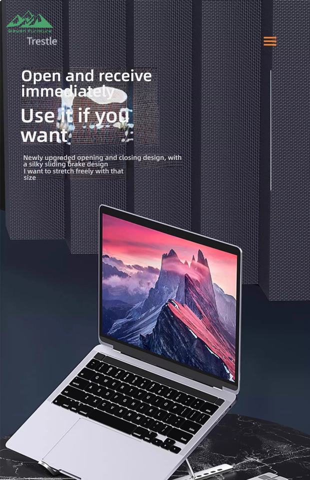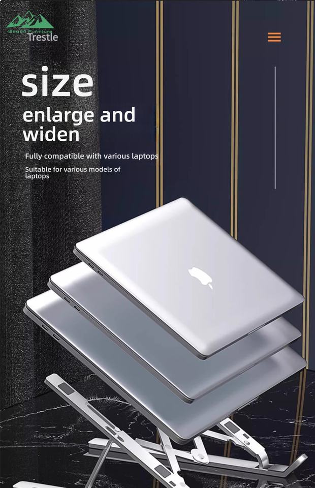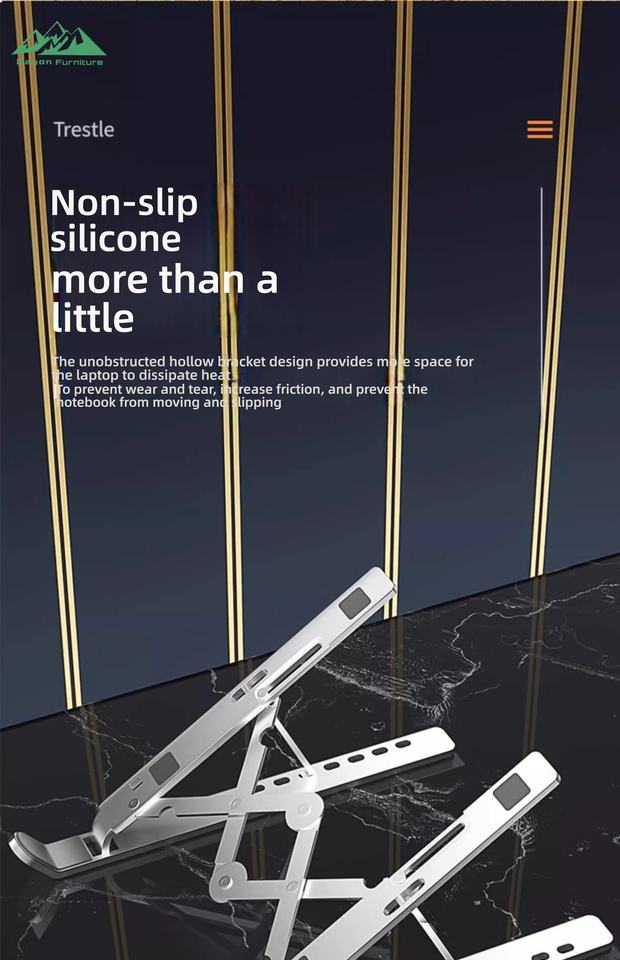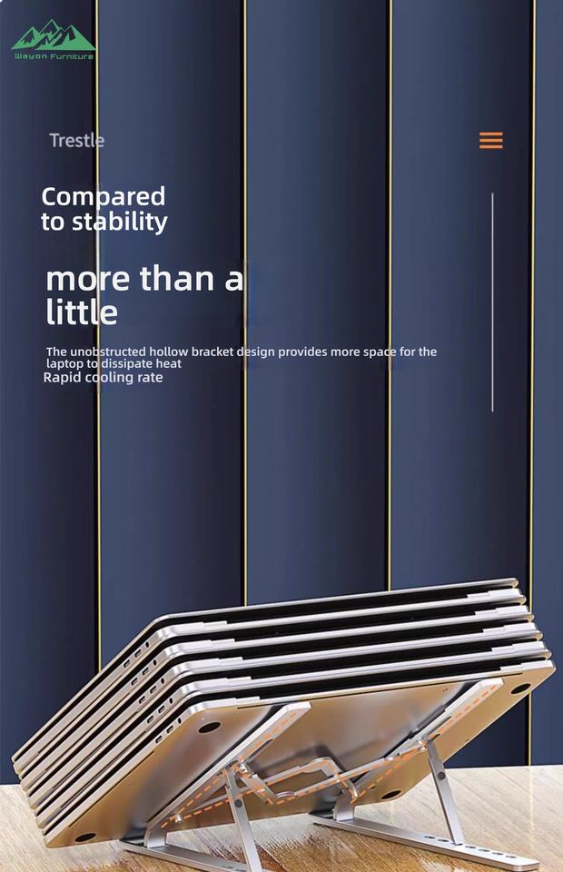 Support pour ordinateur portable pliable en métal Wayon, hauteur réglable avec coussin en silicone pour bureau à domicile, design ergonomique