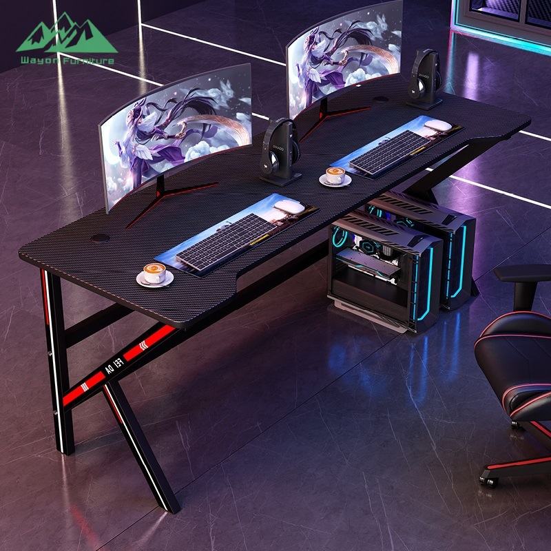 Bureau de jeu professionnel Wayon en forme de K, table PC en fibre de carbone avec accents de course RGB et arc ergonomique pour les sports électroniques