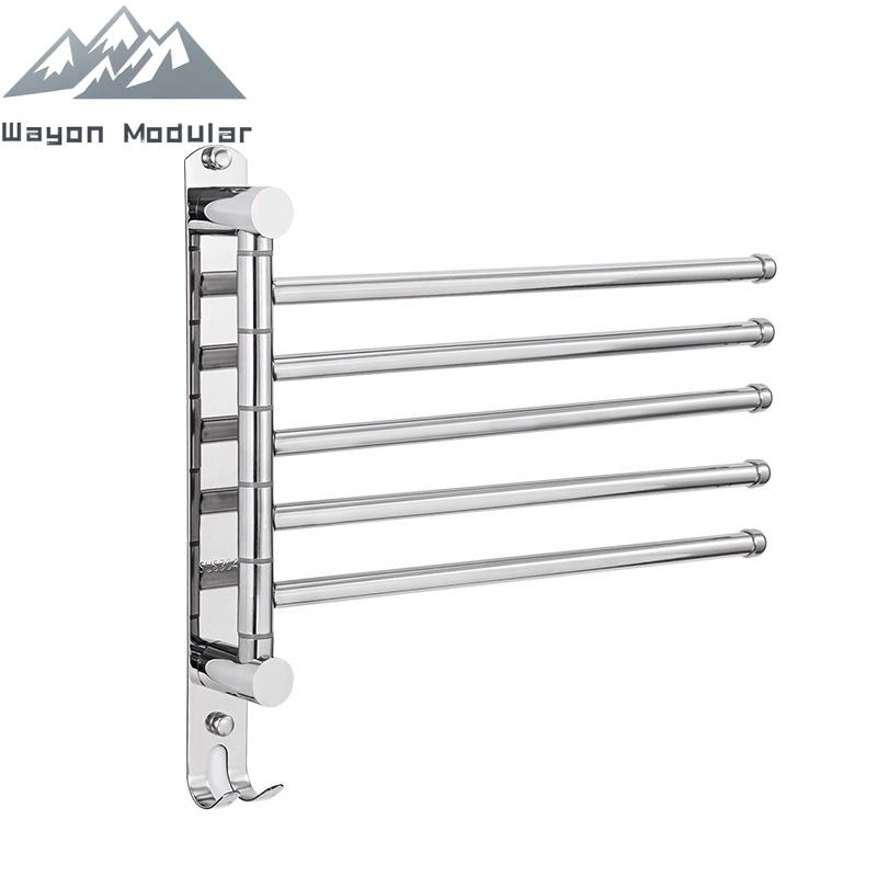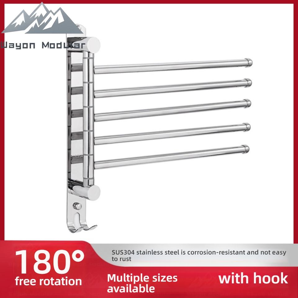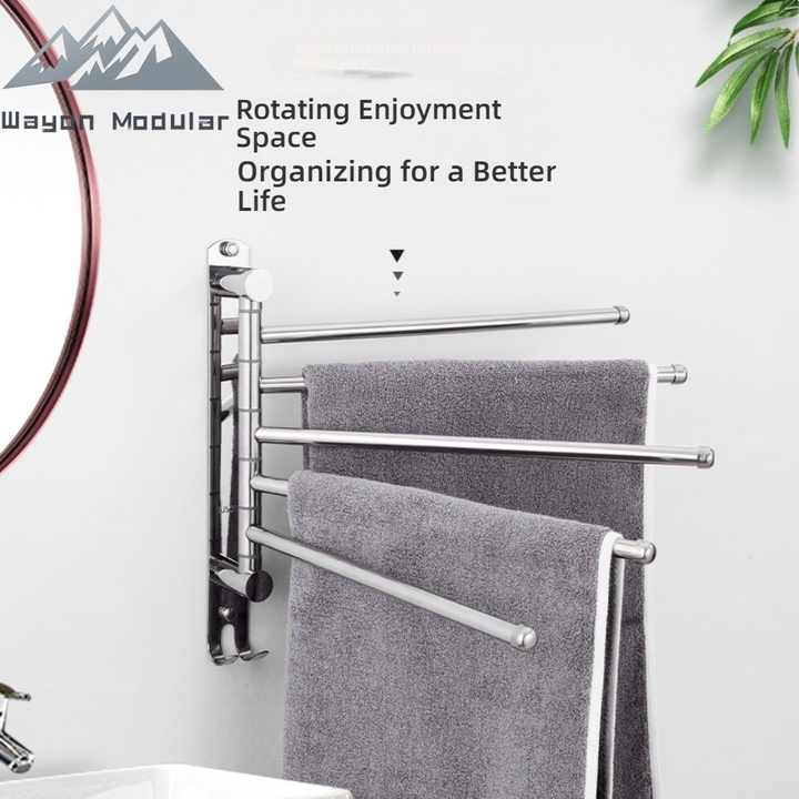 Porte-serviettes mural pivotant en acier inoxydable Wayon avec 4 bras rotatifs et crochets, pour usage hôtelier, organisateur de rangement