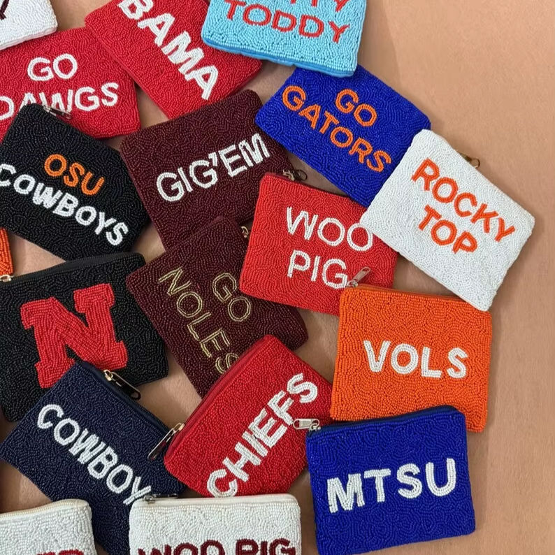 We Are Going Beaded Coin Pouch Handmade Seed Bead Purse Embroidery Clutch Custom Beaded Bag Funny Crystal Wallet fo