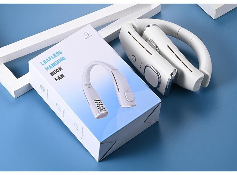 Ventilateur de cou portable rechargeable 4000 mAh, moteur sans balais, 3 vitesses, Type-C, emballage en boîte couleur, pour le sport, l'extérieur et la maison