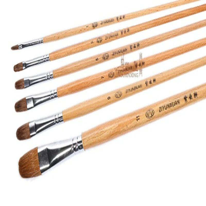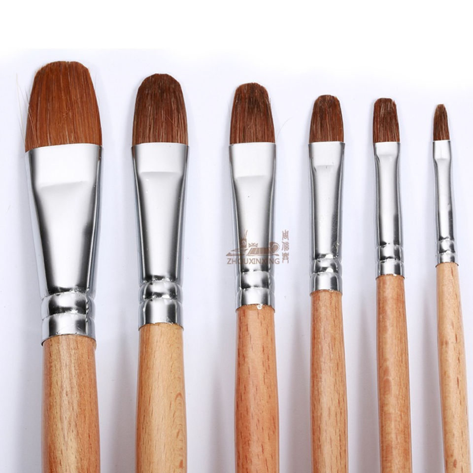Ensemble de 6 pinceaux en poils de blaireau, manche en bois de hêtre, forme de noisette, pour peinture à l'huile, aquarelle, craie et acrylique – Fournitures d'art