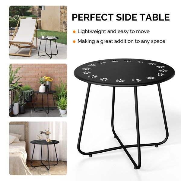Table d'appoint extérieure en acier résistant aux intempéries avec découpes florales pour patio, jardin, balcon